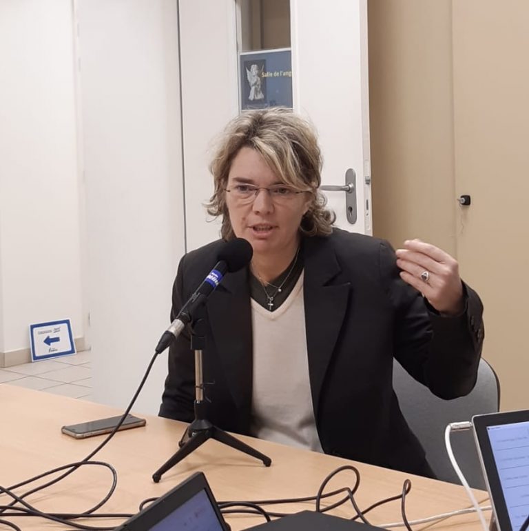 Le déclic ? Une vidéo de 30 minutes résumant le livre d’Olivier Bonnassies, « Dieu, la science, l’épreuve ». « À la première minute, j’étais athée. À la 30ème, j’étais croyante et chrétienne. » Aussi brutal que ça. Elle commence à aller à la messe, arrive en retard, repart avant la fin, n’ose pas parler au prêtre. Elle erre comme ça pendant un an.